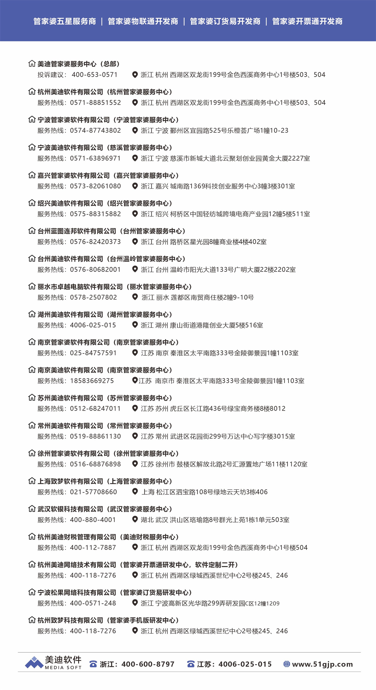 美迪軟件伴隨70000家企業用戶共同成長,25年蟬聯管家婆軟件代理商體系前三強,在20多年的發展中,由單模式的進銷存軟件代理商,成長為多樣化服務的綜合性企業服務公司。提供前、中、后三段服務。前端:提供管理軟件移動端應用研發、軟件二次開發、標準化商城產品及定制;中端:提供管家婆軟件的產品銷售、實施及服務,后端: 提供財稅、企業管理咨詢服務。產品涵蓋進銷存、財務軟件、ERP、CRM、OA、移動物聯、電子商務、零售連鎖等領域。已成功服務海康威視、公牛電器、貝因美、蘇泊爾、老板電器、五豐冷食、川味觀、獅峰茶葉、娃哈哈、四維衛浴、雷士照明、淘淘貓、華之毅時尚集團等幾十個知名品牌和上市公司。在團隊的努力下,美迪軟件榮獲首批全國管家婆授權服務中心、5S體驗中心、最佳合作獎、突出貢獻獎最佳績效獎、長期合作伙伴等幾十個獎項。